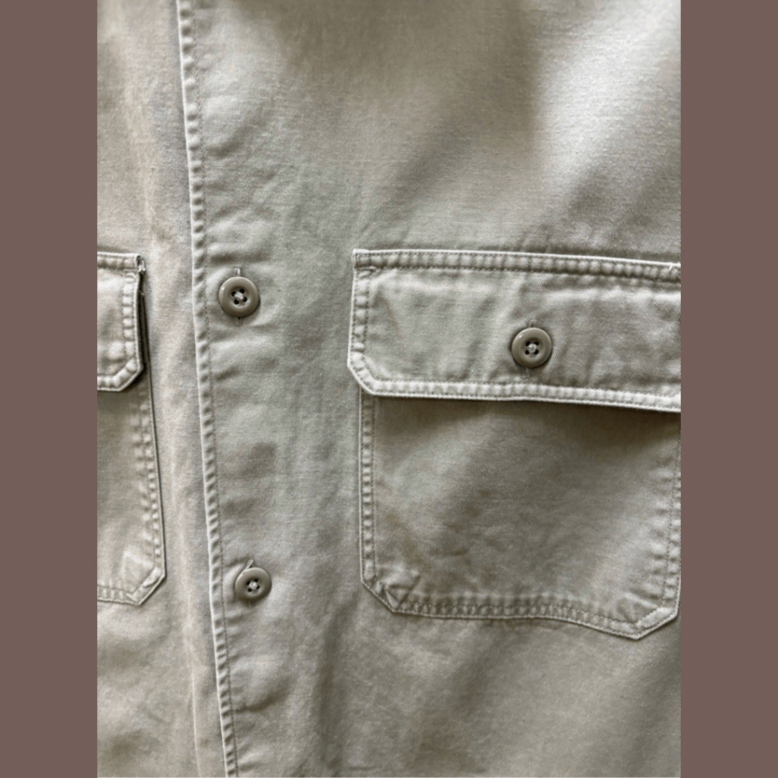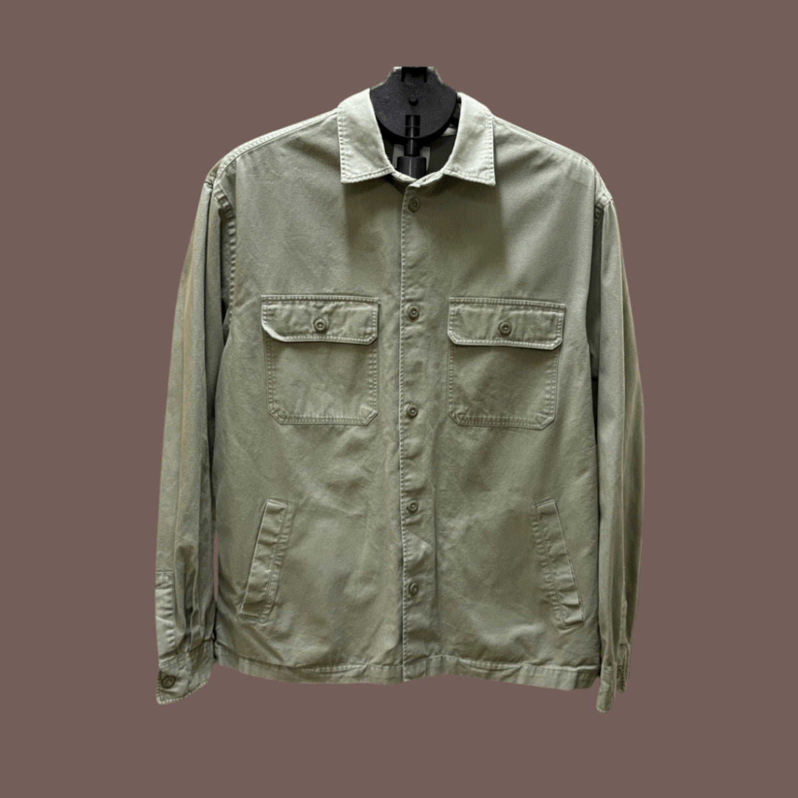 An essential lightweight layer for laid-back days and cooler nights, this H&M men's shacket delivers minimalist style in a soft olive green cotton. Relaxed fit with a collared neckline, dual chest pockets, and hidden side pockets for utility. Versatile and neutral—perfect for casual layering, city strolls, or low-key gorpcore. ✧ normcore meets transitional outerwear ✧