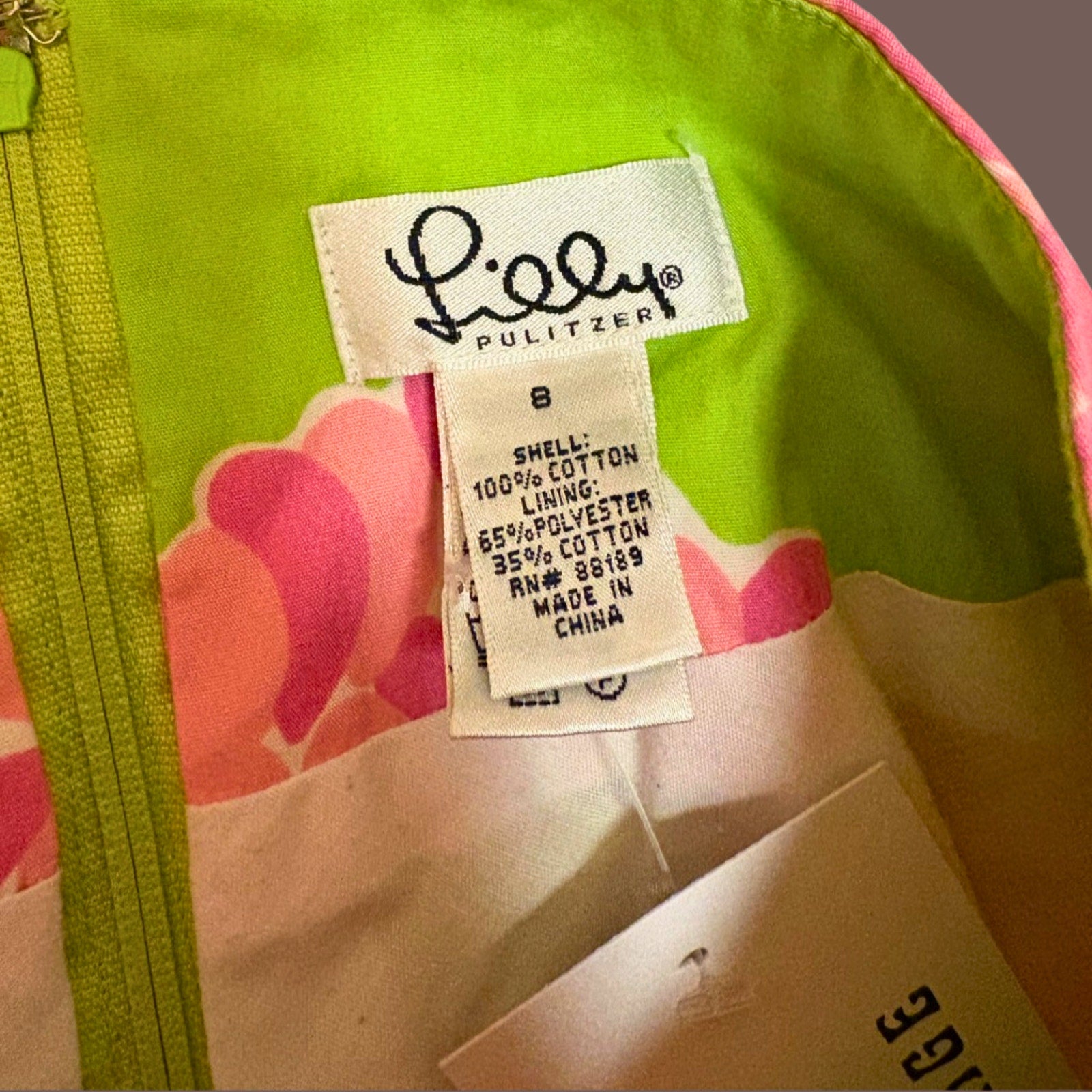 Channel peak Delia’s mall era meets Palm Beach glam with this bold Lilly Pulitzer skirt in a vibrant chartreuse green and hot pink floral print. Crafted from breathable cotton with full lining, this A-line silhouette features a playful side bow detail and back zipper. The ultimate summer statement for coastal cowgirl meets early 2000s preppy chic.