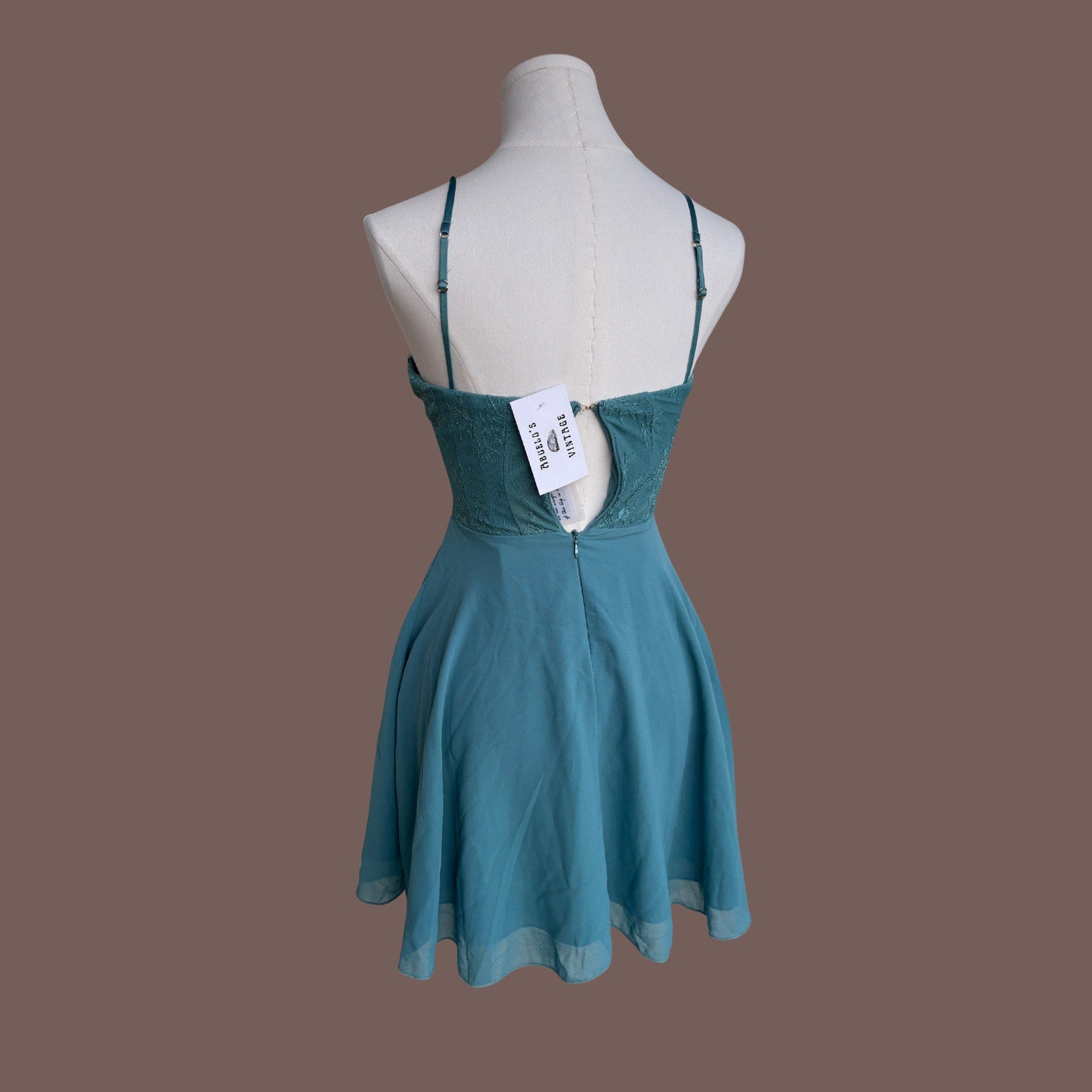 Serving full 2000s party girl fantasy, this Oh Polly mini dress features a structured lace corset bodice with underwire shaping and a flirty chiffon skirt that moves effortlessly. The teal tone hits that perfect balance between soft and statement, while the plunging V detail and delicate straps give it that hyperfemme, night-out energy. Designed to snatch and flow, this piece is pure ✧ 2000s party girl coded ✧