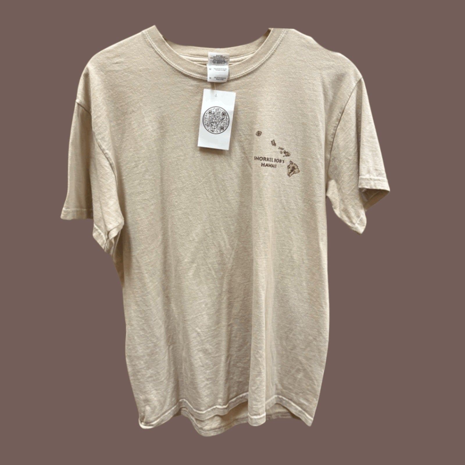 Aloha nostalgia with an aquatic twist. This vintage Gildan Ultra Cotton tee showcases a vibrant Honu (Hawaiian sea turtle) back print from Snorkel Bob’s Hawaii, paired with an island map chest logo. Cream-toned and sun-faded in all the right ways, it’s a perfect throwback souvenir tee for lovers of marine life, travel, and Y2K touristcore.