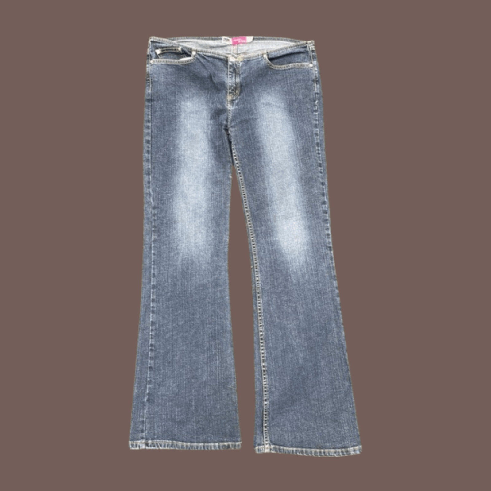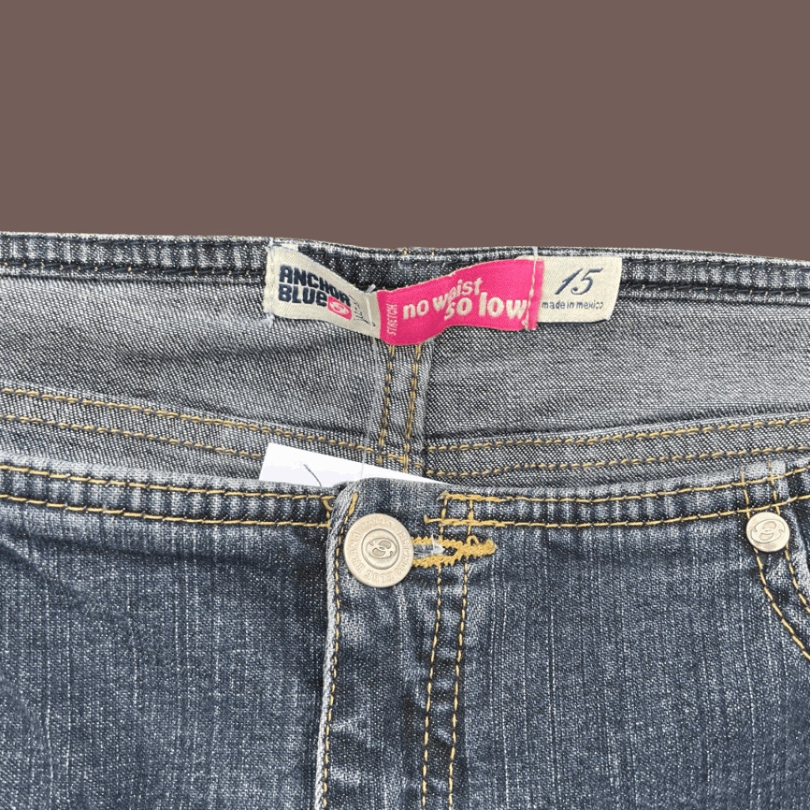 The ultimate throwback fit—these Y2K-era Anchor Blue jeans serve low-effort cool with their wide-leg cut, subtle whiskering, and signature "no waist" mid-rise fit. With a mid-wash blue tone and slight fade, they’re made for chunky sneaker pairings, crop tops, and mall-era nostalgia. ✧ peak early 2000s denim energy