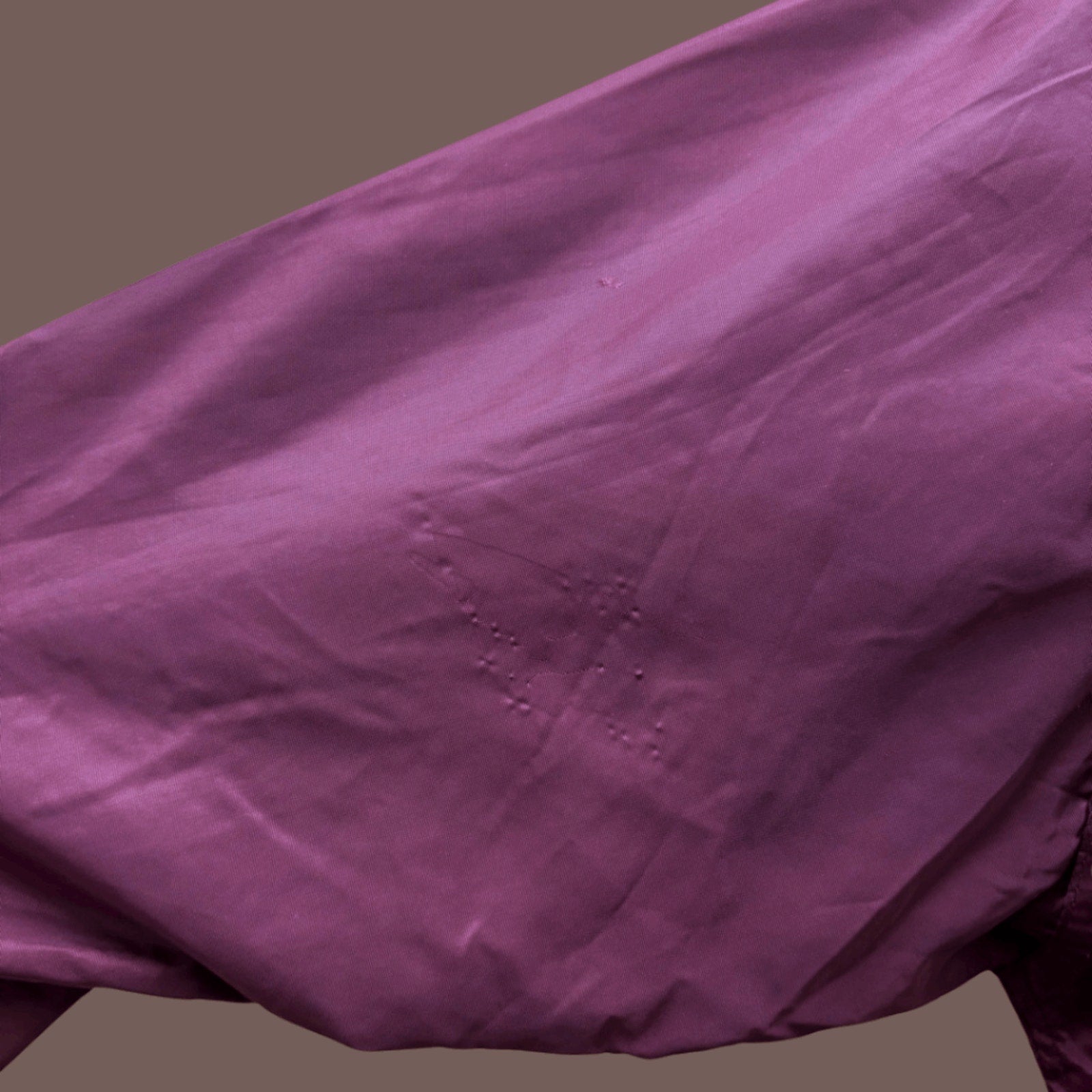 A true West Coast rec league relic. This vintage 1960s Dunbrooke coach jacket is embroidered front and back with bright yellow chainstitch — featuring “Mustang All-Stars” and “El Cerrito” surrounded by varsity stars. Maroon nylon shell with a slim, cropped fit and classic snap-button front. Great worn oversized or styled street-ready.