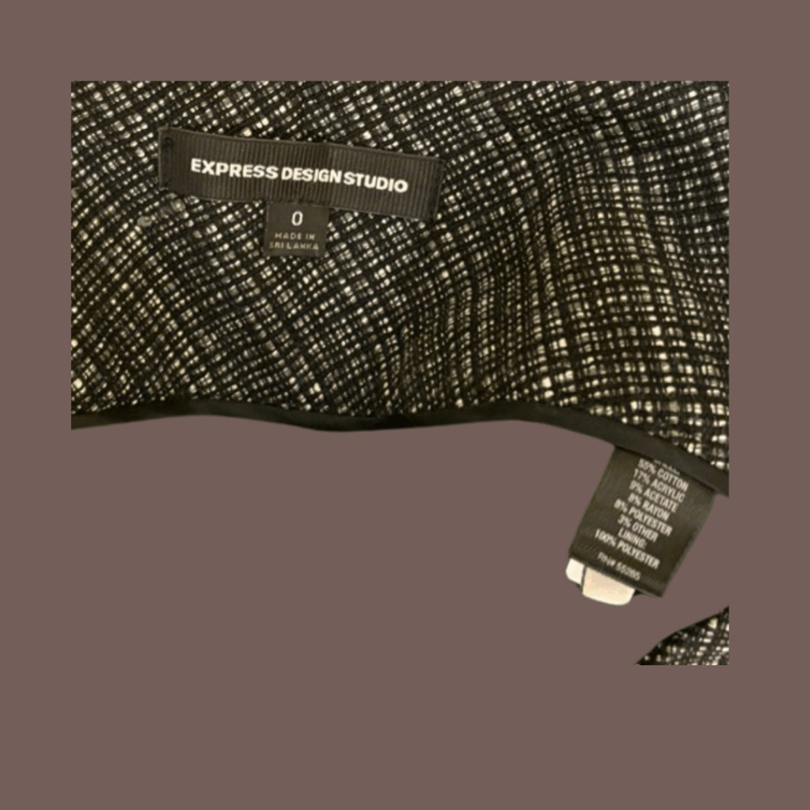 Ultra-chic and versatile, this Express Design Studio mini skirt delivers a sharp silhouette with its asymmetrical slit and structured tweed texture. A subtle plaid weave and bold green lining add a pop of personality under its classic exterior. Ideal for powering through the office or elevating your everyday edit. ✧ serves librarian off-duty