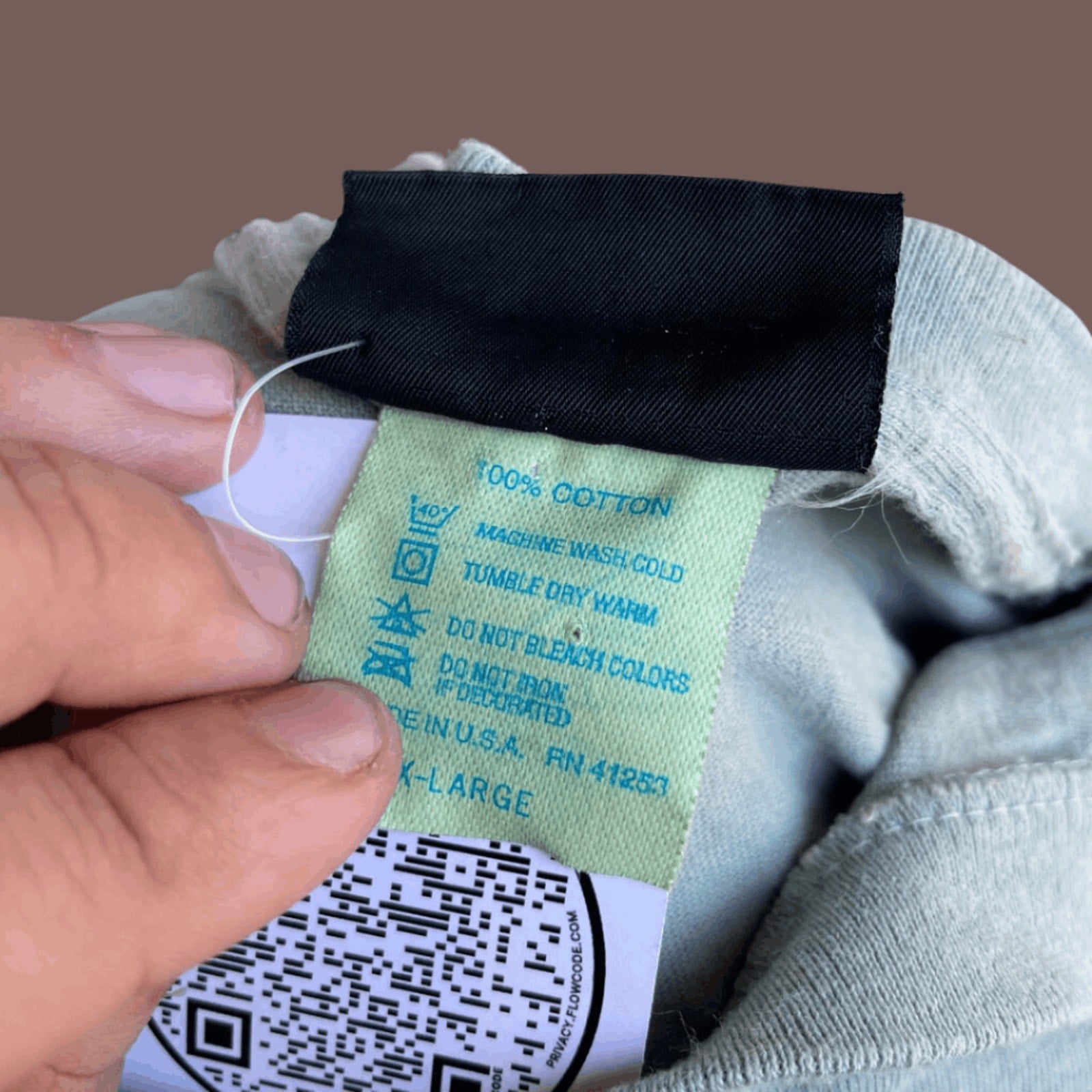 Breathe desert air in this soft sage 90s v-neck from Granite Knitwear Inc., made in the USA with a bold Sedona hand symbol print. Single-stitch construction and 100% cotton give it a relaxed, worn-in feel. Subtle sleeve stitching flaw adds a touch of authentic age. ✧ granola tourist-core staple