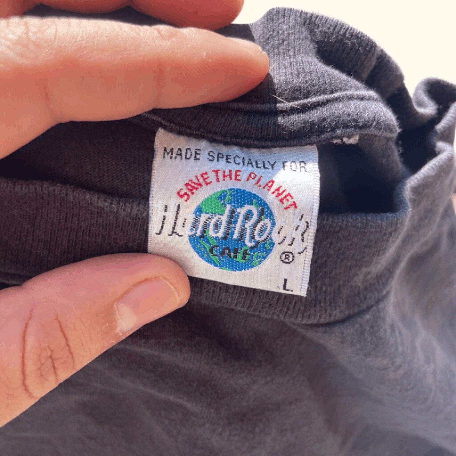 are original Hard Rock heat. This late 80s / early 90s Hard Rock Cafe Tokyo tee features single-stitch hems, a woven neck tag, and buttery soft 100% cotton construction. Classic red and teal logo hits on a perfectly faded black base. A collector’s dream and a streetwear staple rolled into one — think bootleg flea markets, Tokyo street style, and true rock archive energy.