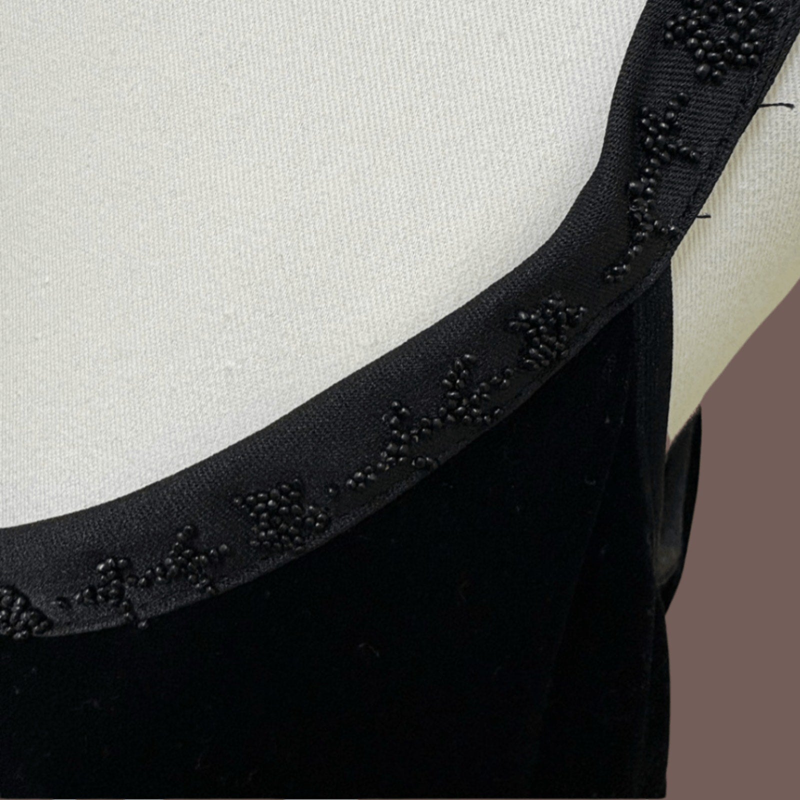 A sleek staple for your Y2K rotation—this vintage Hillard & Hanson tank dress channels minimalist elegance with a velvety sueded texture and delicate black beadwork around the neckline and straps. It hugs with stretch and flares softly at the hem for movement.