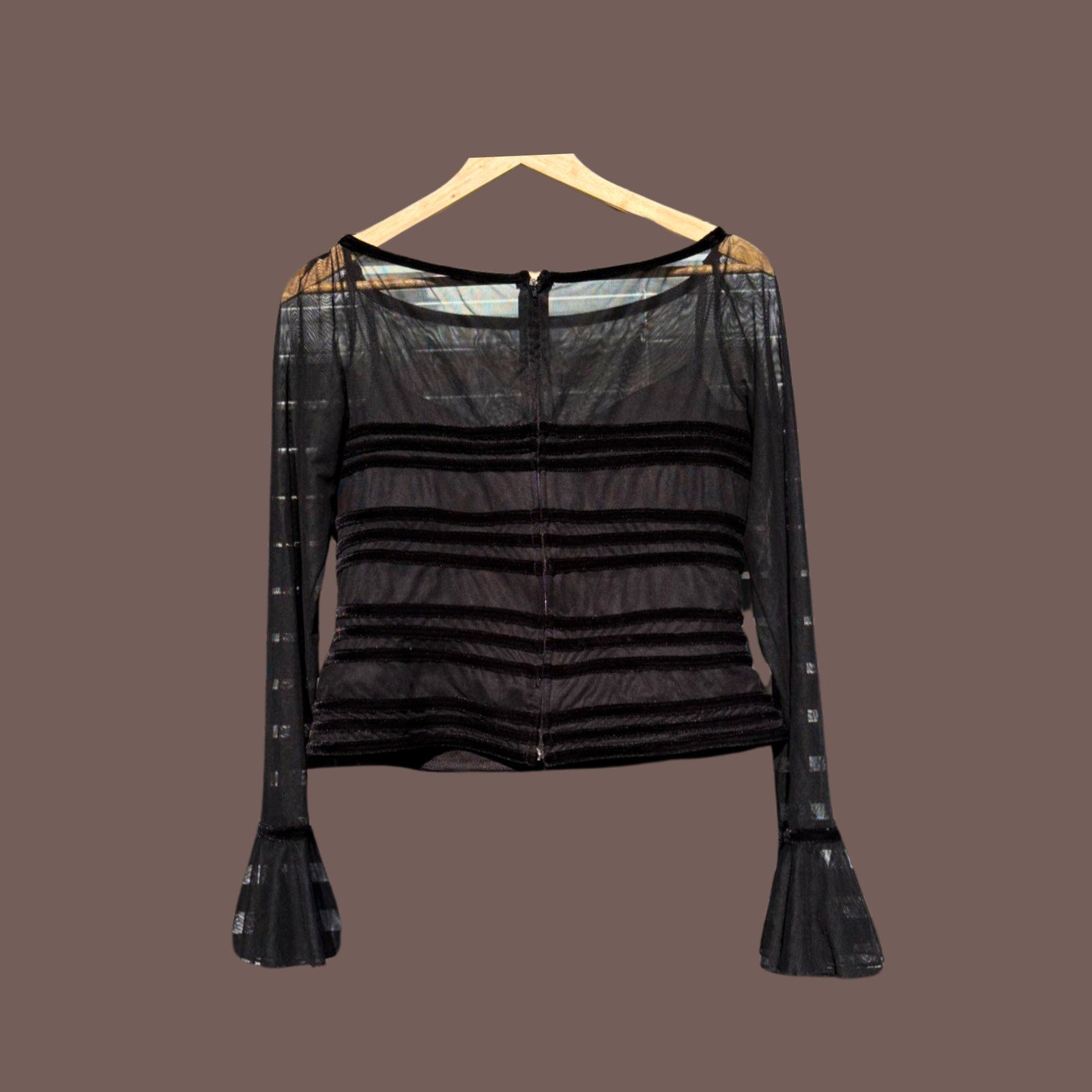 Vintage JS Collections Sheer Velvet Mesh Top – 2000s Romantic Glam