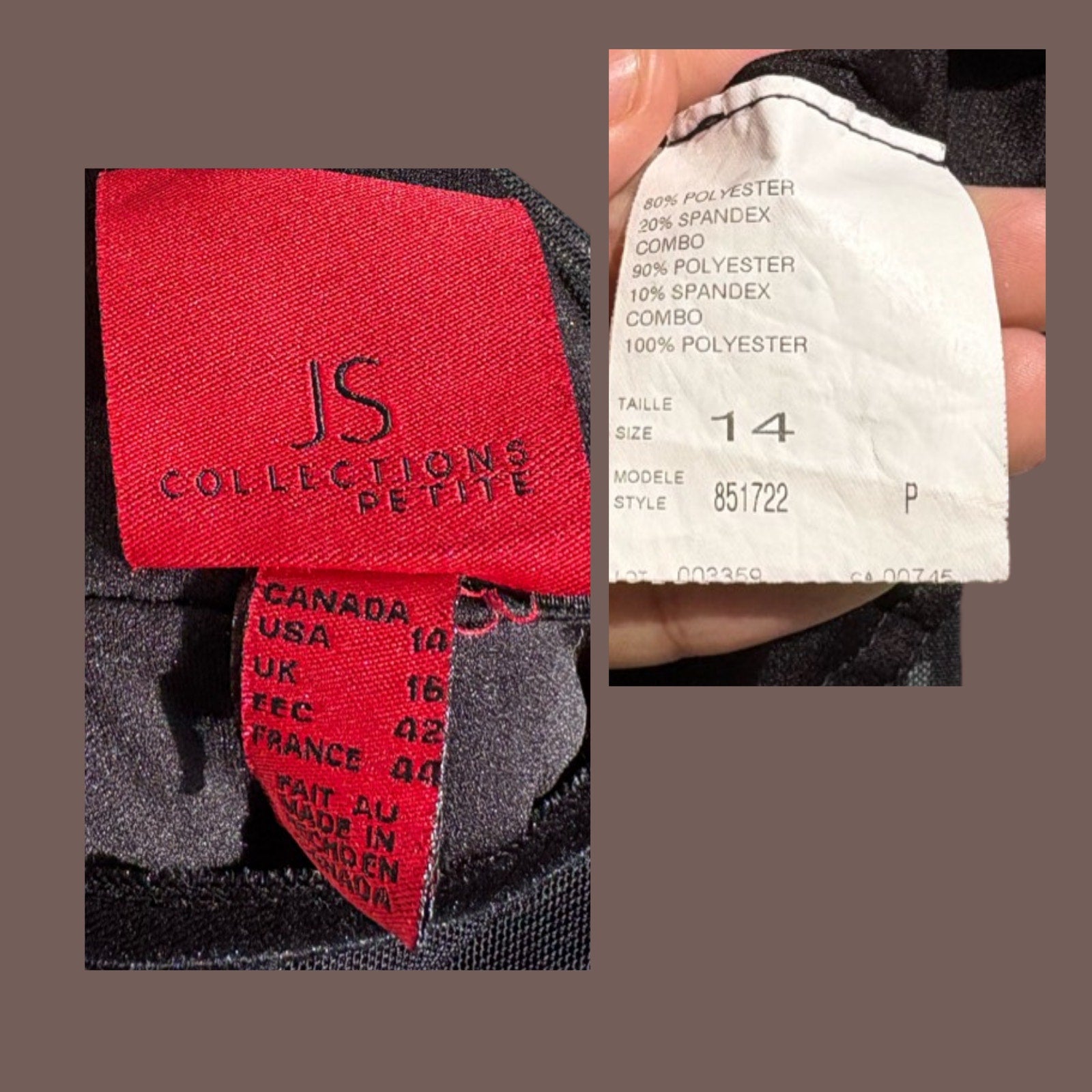 Sheer drama meets gothic glam. This vintage JS Collections Petite top features delicate sheer black mesh with luxe velvet piping throughout. The structured bodice gives it a bustier-inspired silhouette, while the flared mesh cuffs add extra flair. Soft stretch poly-spandex blend ensures a snug yet breathable fit. A true ✧ dark romantic wardrobe staple ✧ for your next night-out look or alt formal vibe.