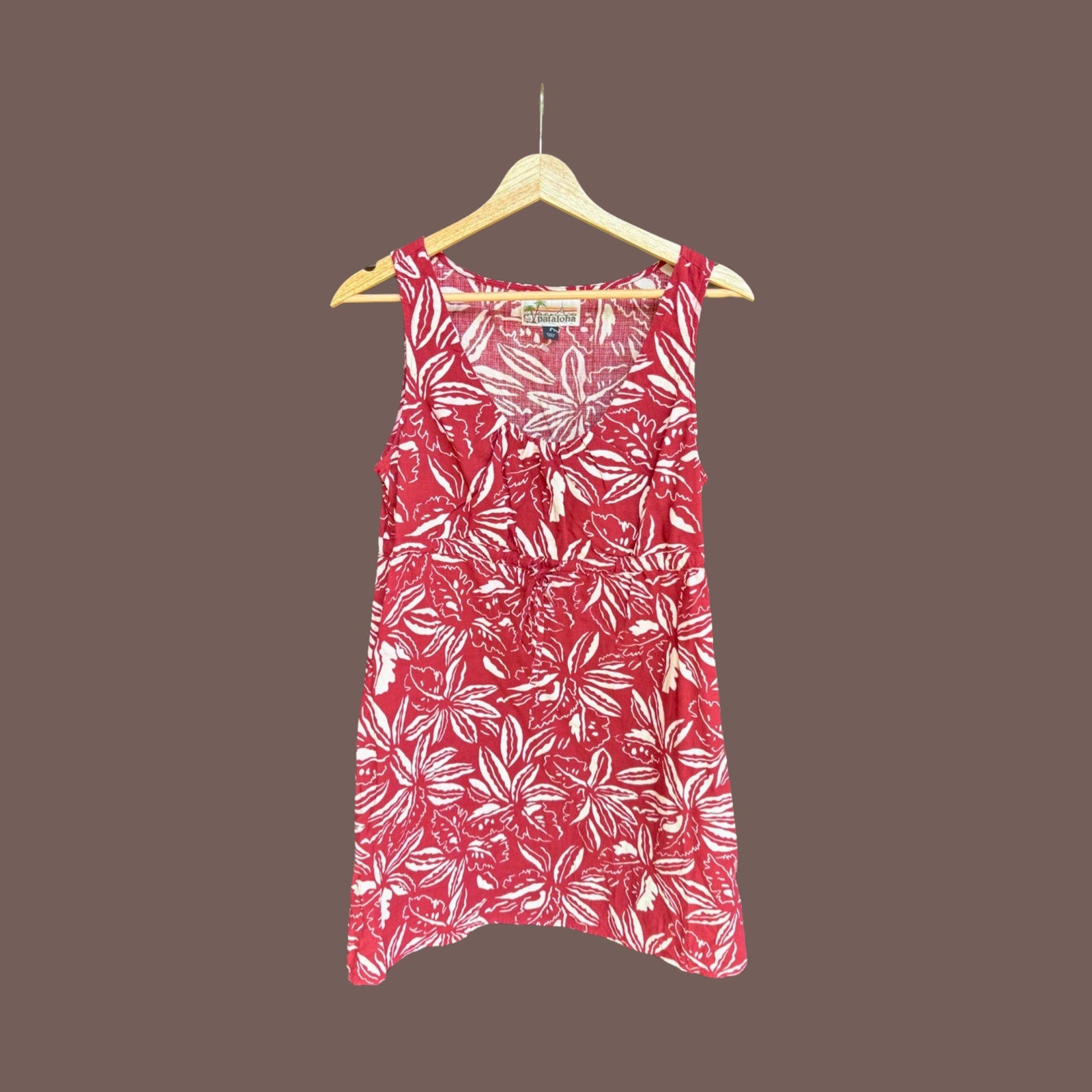 Island classic with heritage roots. This vintage Patagonia Pataloha sleeveless dress is crafted from soft, 100% organic cotton in a rich red and white hibiscus floral print. Relaxed A-line silhouette with a drawstring empire waist and keyhole tie at the neckline. Perfect for summer picnics, warm-weather travel, or throwing on after a surf session. ✧ coastalcowgirl meets aloha-core ✧