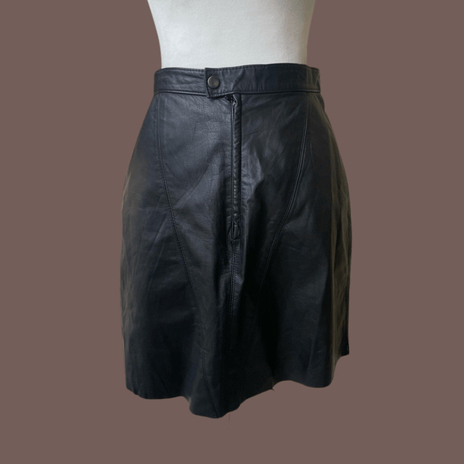 Vintage Pelle Black Leather Mini Skirt – 90s Minimalist Rock