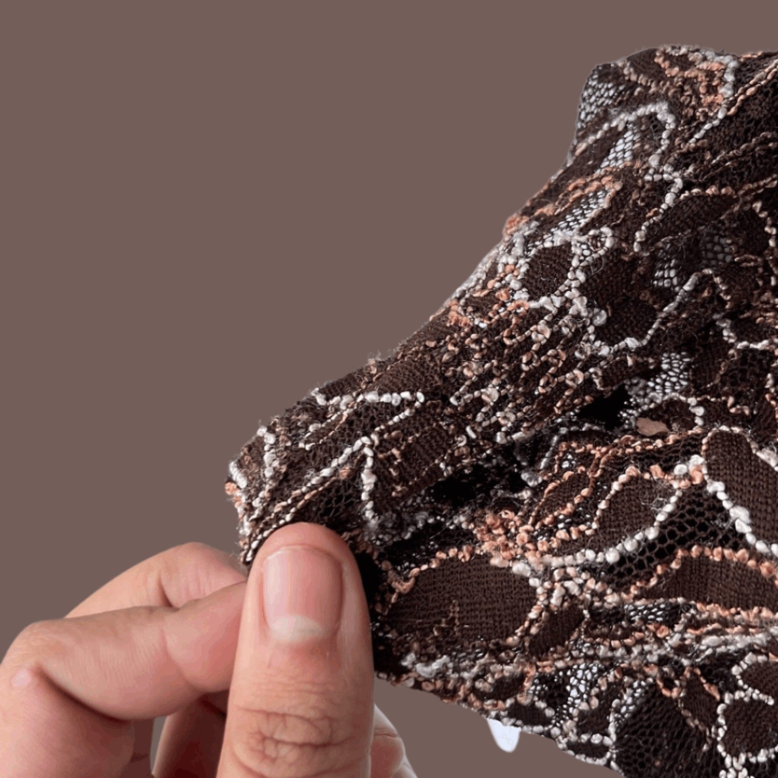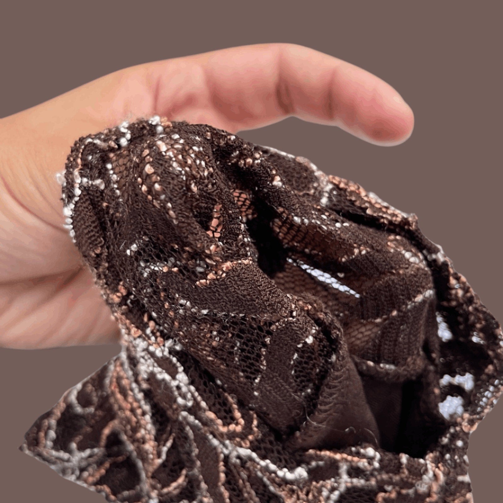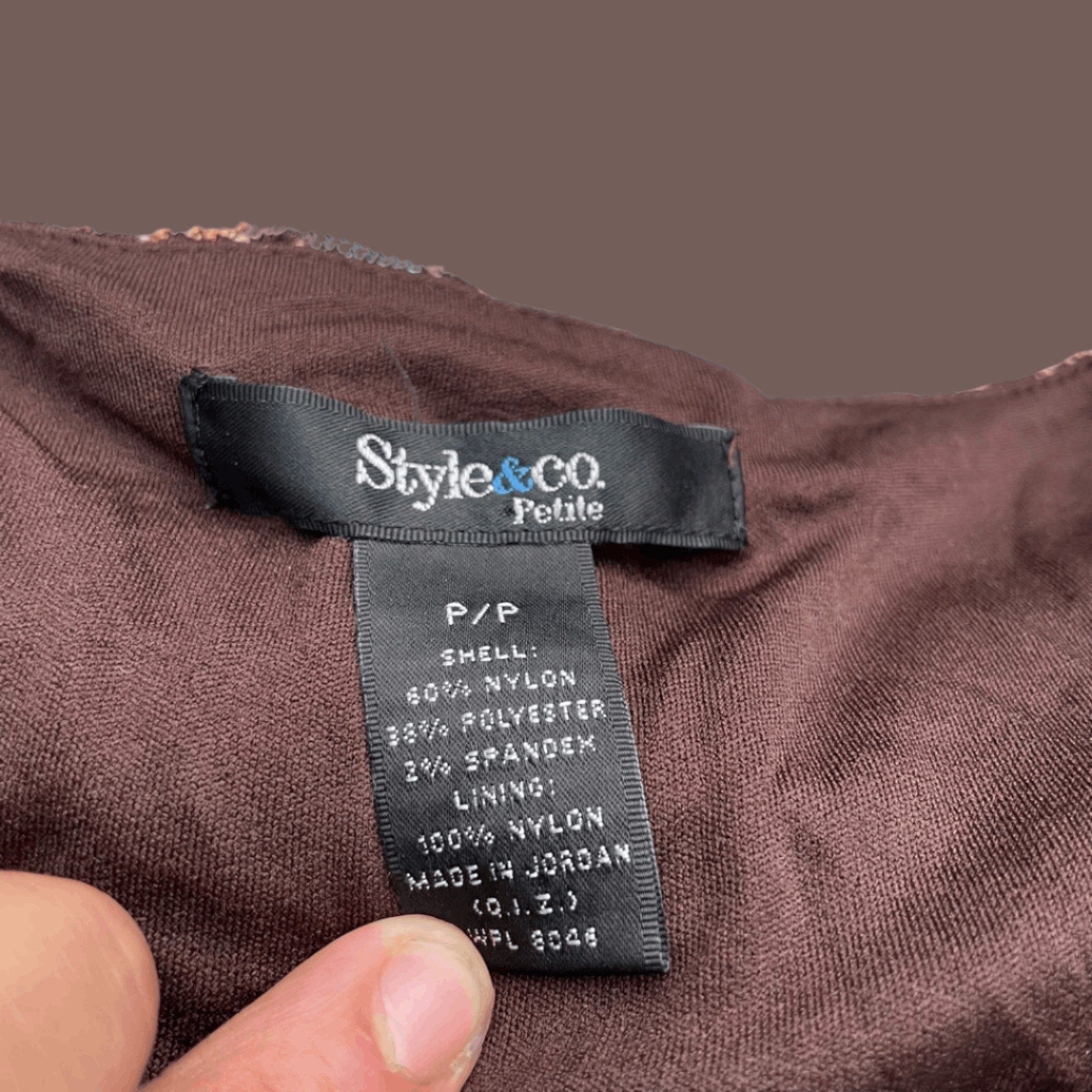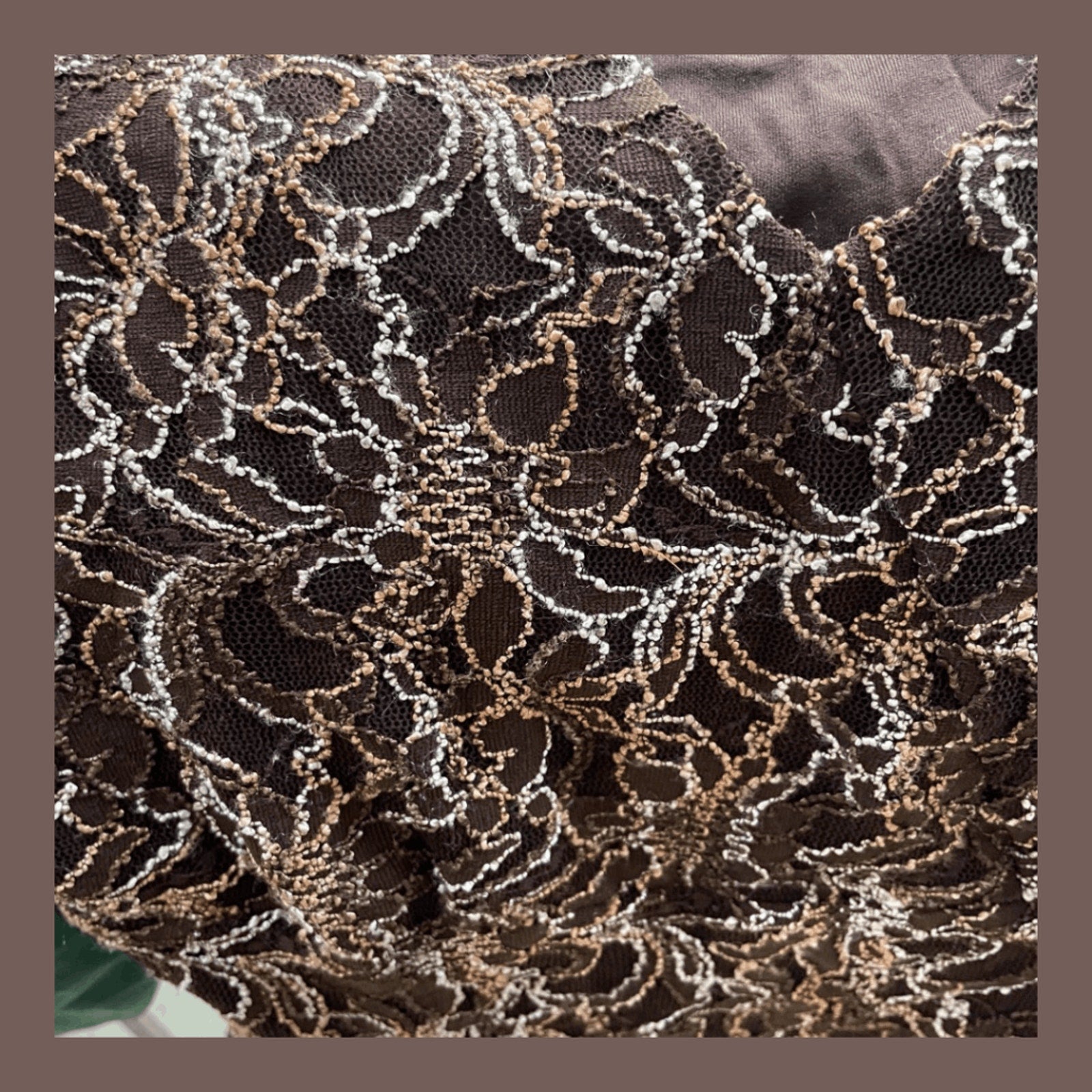 Rich in texture and earthy in tone, this vintage Style & Co. petite top features a stretch mesh overlay with intricate abstract embroidery and tonal beading. The semi-sheer lace shell over a silky brown nylon lining gives it that early 2000s baddie-meets-boho look. Short sleeves and a V-neckline keep it flirty yet wearable—✧ serves dinner-date-at-the-steakhouse energy.