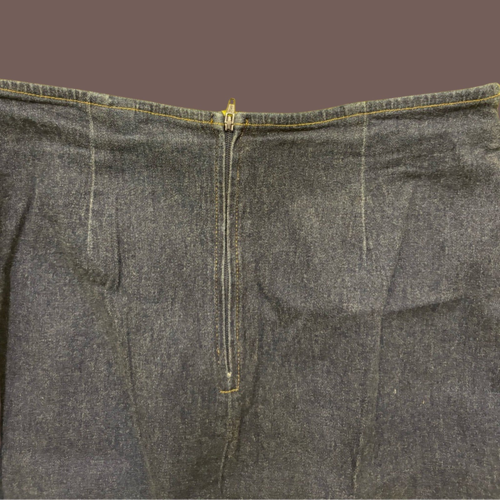 True 90s VENUS straight denim skirt in a classic high-waisted silhouette. Features dark indigo cotton denim, contrast stitching, back zip closure, and a sharp side slit. Made in USA. An essential piece of minimalist vintage—✧ indie darling energy ✧ meets heritage Americana cool.