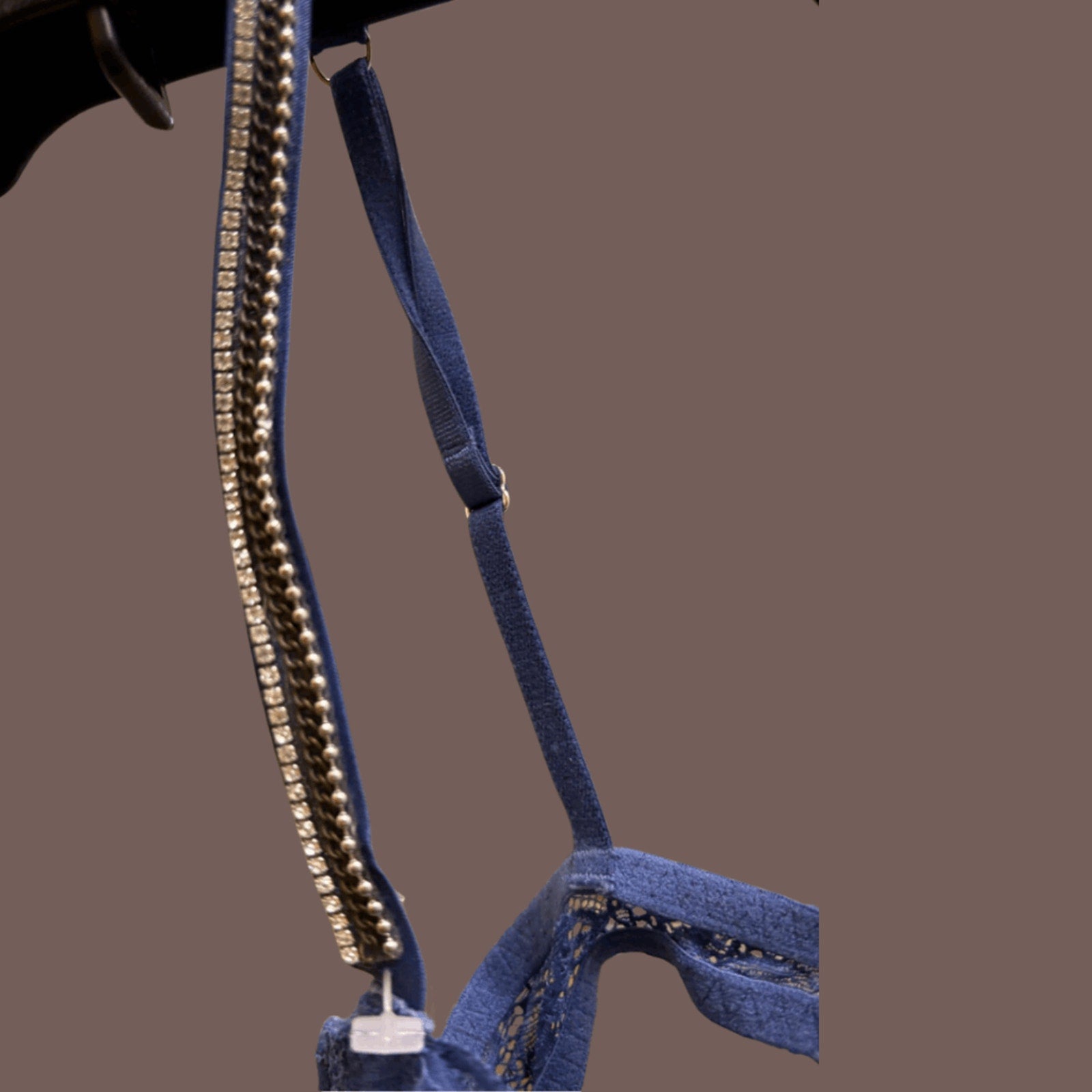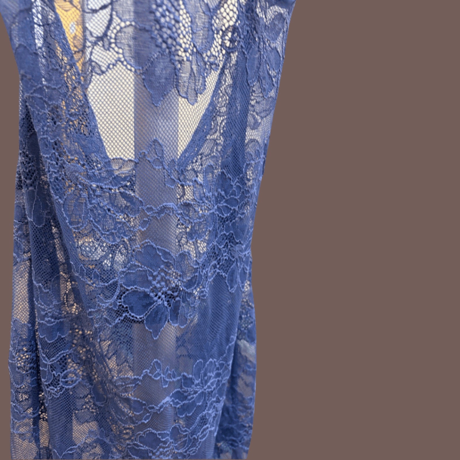 Sultry, sheer, and begging to be layered—this Victoria’s Secret navy lace slip is pure vintage bombshell coded. Featuring a floral lace body, underwired bustier top, and rhinestone chain straps, it's a femme-fatale fantasy made real.