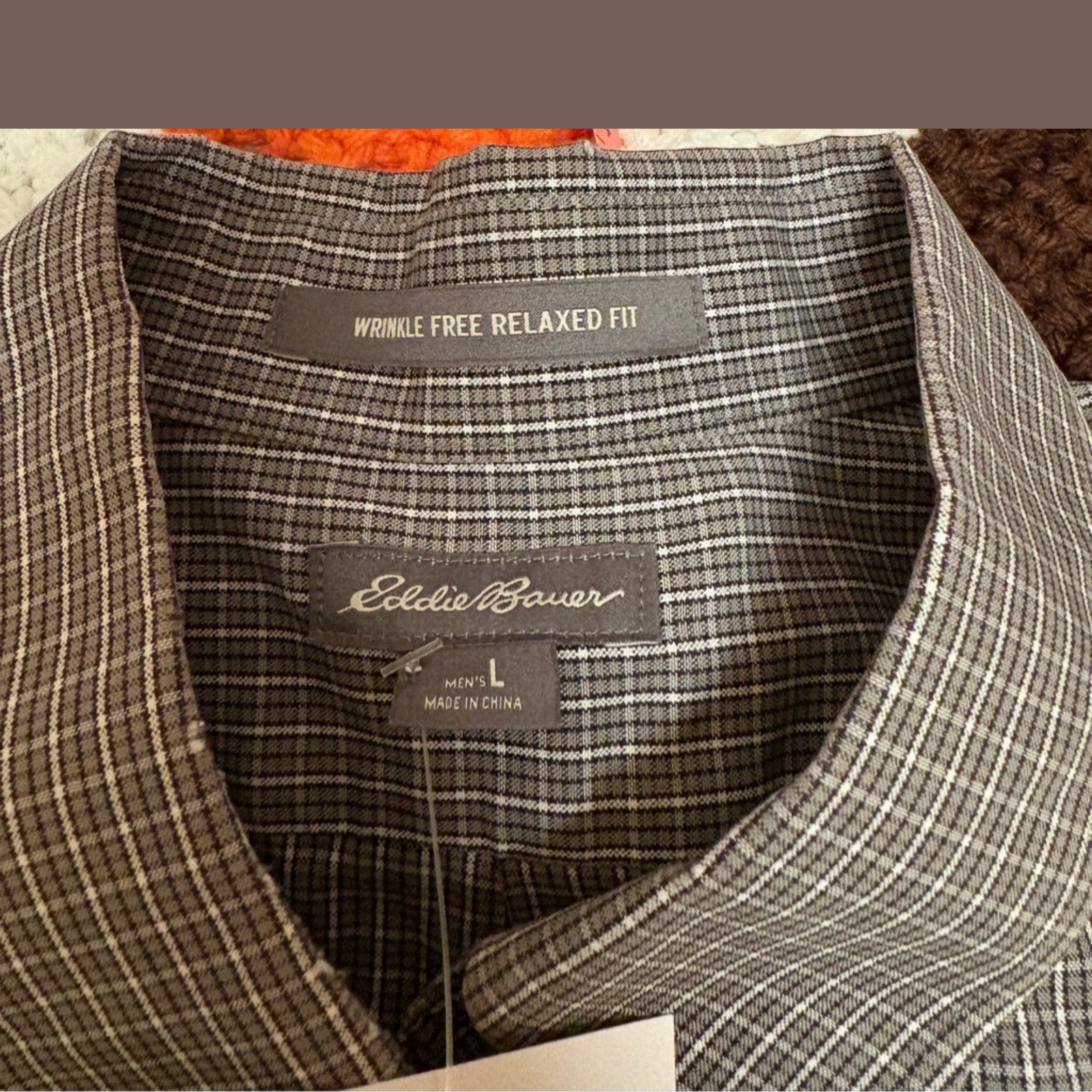 Vintage Eddie Bauer Men's Gray Plaid Wrinkle-Free Relaxed Fit Buttondown Shirt Size L